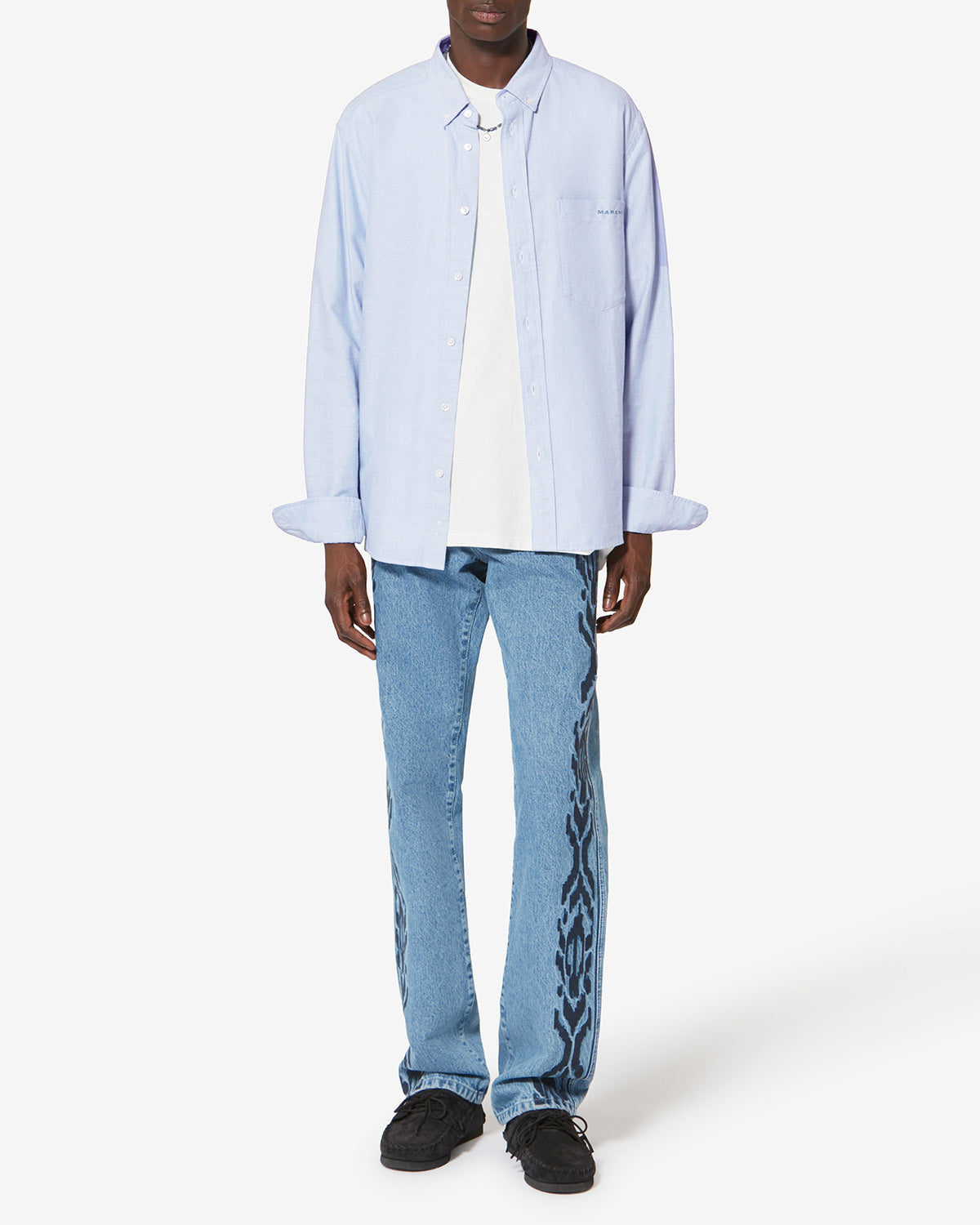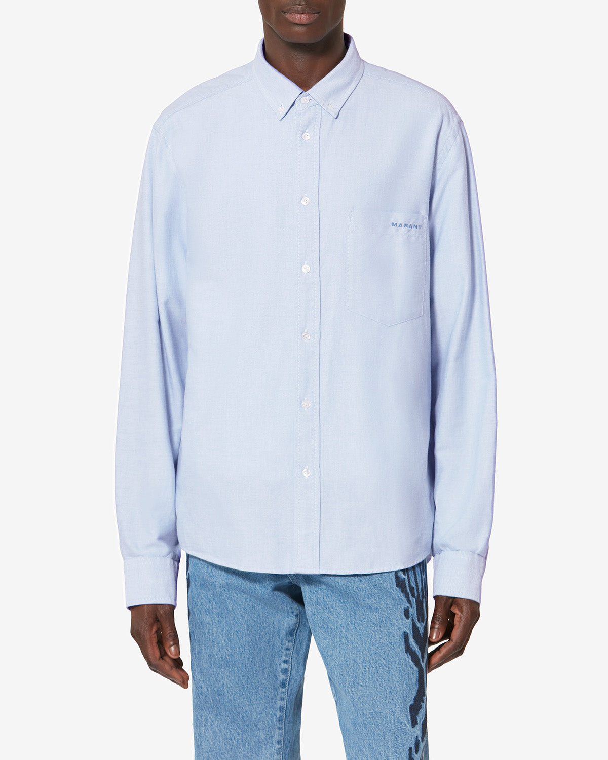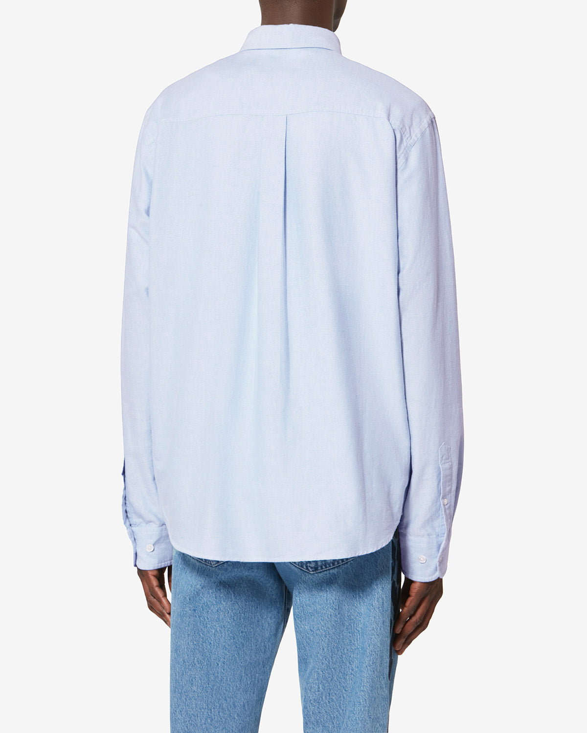 Plain organic cotton Oxford shirtAmerican necklineButtonedPatch pocket on the chestLong sleeves Straight buttoned cuffsRear box pleat and straight cut