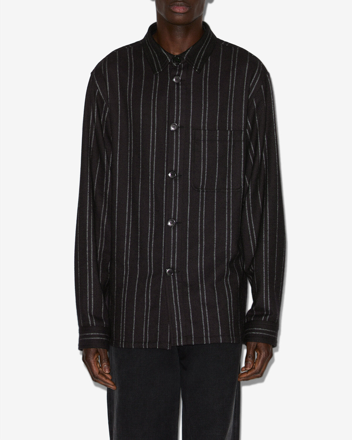 Cotton flannel tennis stripe shirtShirt collarLong sleevesStraight buttoned cuffsPatch pocket on the chestButtoned frontInverted rear pleatRelaxed fit