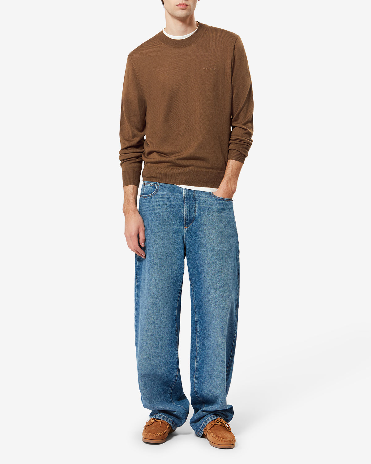 Lightweight merinos wool sweaterRound necklineLong sleevesTone-on-tone "Marant" logo embroidery on the chestRibbed finishesRelaxed fit